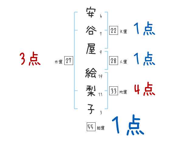 安谷屋絵梨子さんの画数の鑑定結果