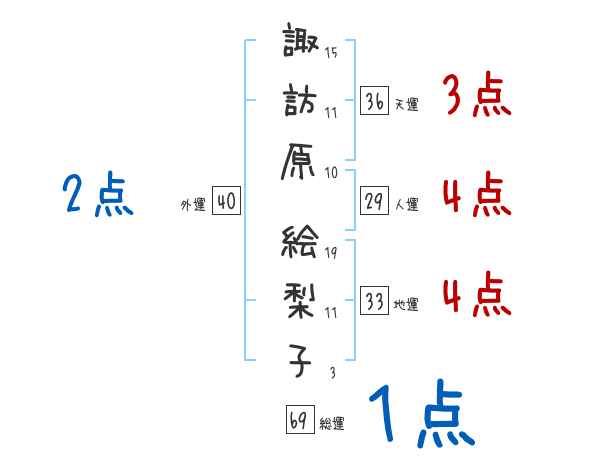 諏訪原絵梨子さんの総運は69画の1つ星