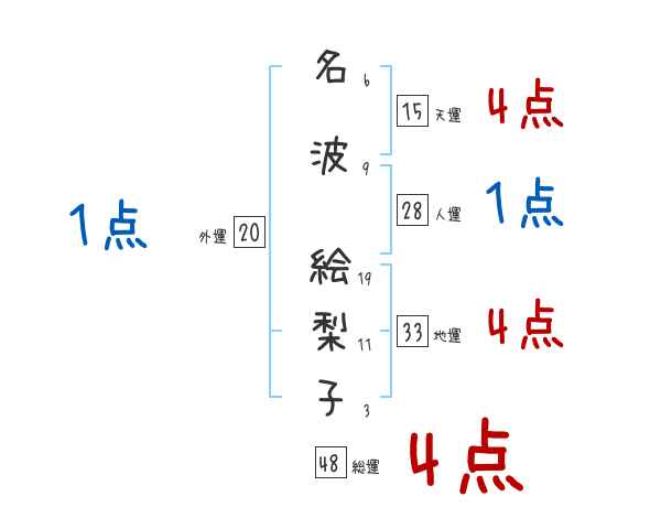 総運![]() | 名波絵梨子さんの総運は48画の4つ星!賢明な性格で人望が厚い。指導力があり多くの人に尊敬される。 あなたの人生を表す1番重要な運勢です。生涯を通じて影響する総合運となり、主に50歳以降の晩年期に影響を及ぼします。 |