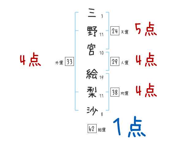 三野宮絵梨沙さんの画数の鑑定結果