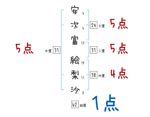 安次富絵梨沙さんの画数の鑑定結果