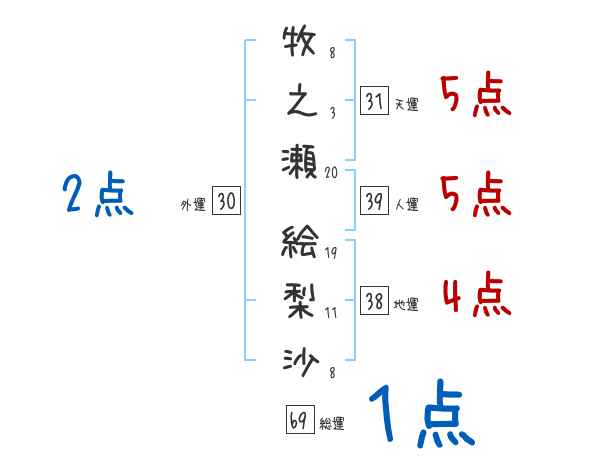 牧之瀬絵梨沙さんの画数の鑑定結果