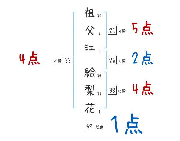 祖父江絵梨花さんの画数の鑑定結果