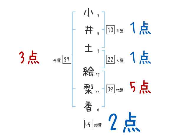小井土絵梨香さんの画数の鑑定結果