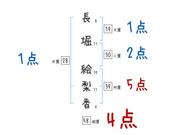 総運![]() | 長堀絵梨香さんの総運は58画の4つ星!安定した生活。大器晩成タイプ。 あなたの人生を表す1番重要な運勢です。生涯を通じて影響する総合運となり、主に50歳以降の晩年期に影響を及ぼします。 |