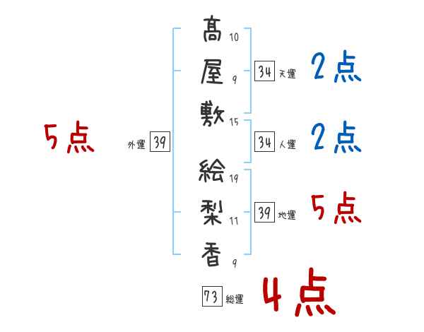 髙屋敷絵梨香さんの画数の鑑定結果
