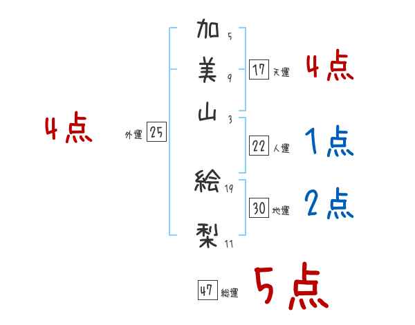 加美山絵梨さんの画数の鑑定結果