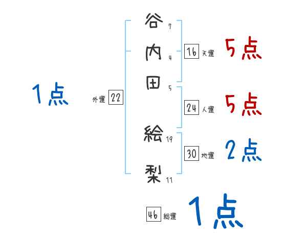 谷内田絵梨さんの画数の鑑定結果