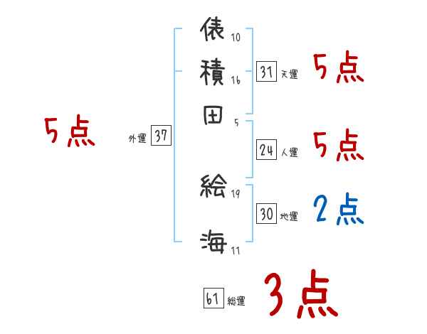 外運![]() | 俵積田絵海さんの外運は37画の5つ星!努力家で順応性に優れる。現実的な考え方ができ忠実に物事をこなす。 生活面を象徴する運勢です。外部から受ける影響力を表し、結婚運、家庭運や職場、環境への順応性を表します。 |