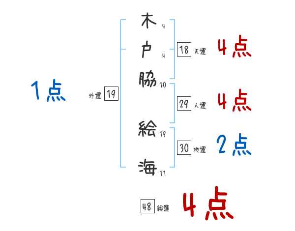 天運![]() | 木戸脇絵海さんの天運は18画の4つ星!情熱的で剛気。忍耐力があり信頼される。 家系が持つ宿命的な運勢を表します。祖先から受け継いだ苗字ですので自分の力が及びません。家柄を象徴します。 |