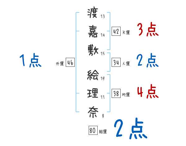 渡嘉敷絵理奈さんの画数の鑑定結果