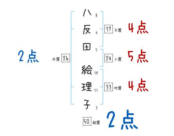 八反田絵理子さんの画数の鑑定結果