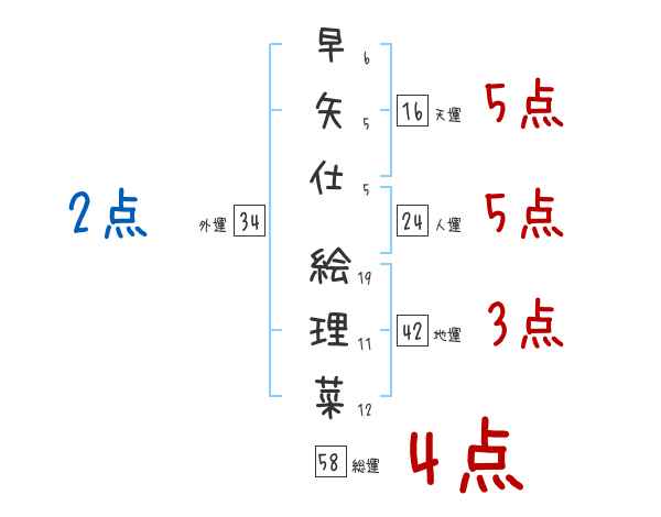 早矢仕絵理菜さんの画数の鑑定結果