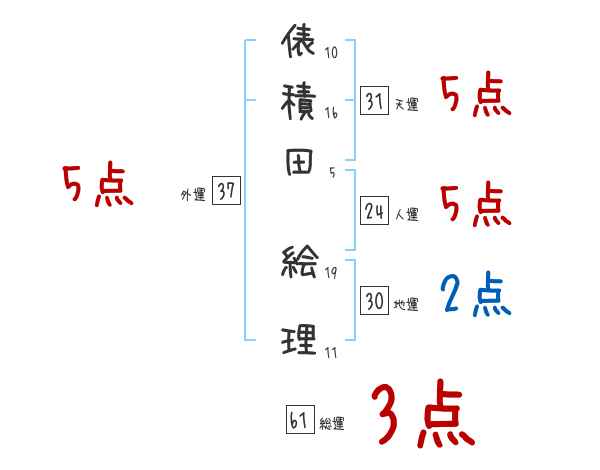総運![]() | 俵積田絵理さんの総運は61画の3つ星!強情な性格でうぬぼれタイプ。自ら破滅する。 あなたの人生を表す1番重要な運勢です。生涯を通じて影響する総合運となり、主に50歳以降の晩年期に影響を及ぼします。 |