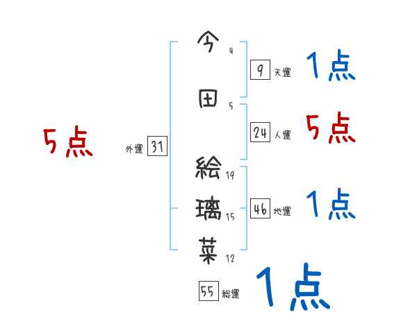 今田絵璃菜さんの画数の鑑定結果