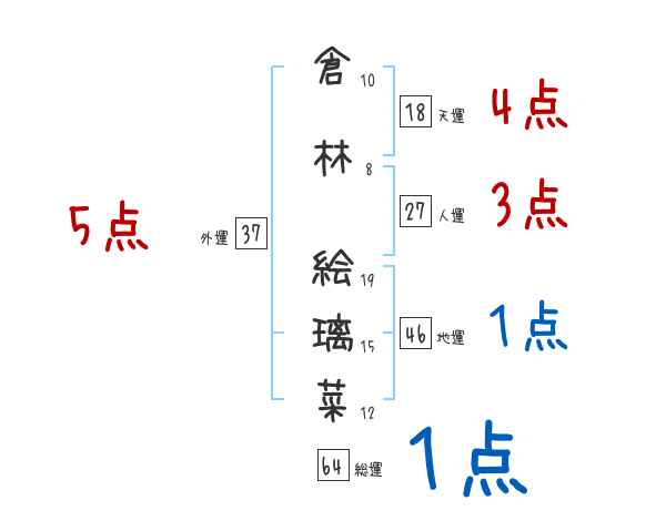外運![]() | 倉林絵璃菜さんの外運は37画の5つ星!努力家で順応性に優れる。現実的な考え方ができ忠実に物事をこなす。 生活面を象徴する運勢です。外部から受ける影響力を表し、結婚運、家庭運や職場、環境への順応性を表します。 |