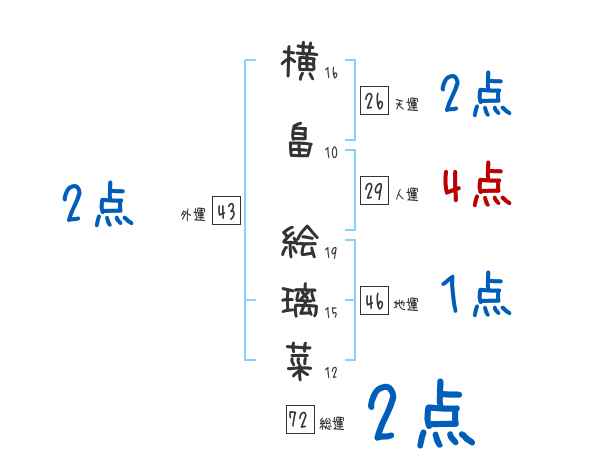 横畠絵璃菜さんの画数の鑑定結果