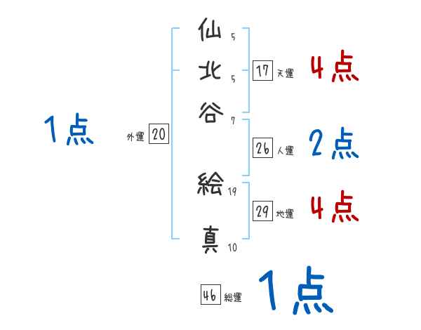 仙北谷絵真さんの画数の鑑定結果