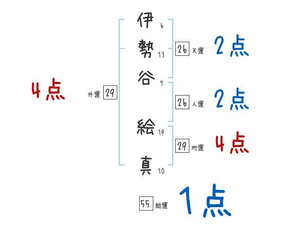 伊勢谷絵真さんの画数の鑑定結果