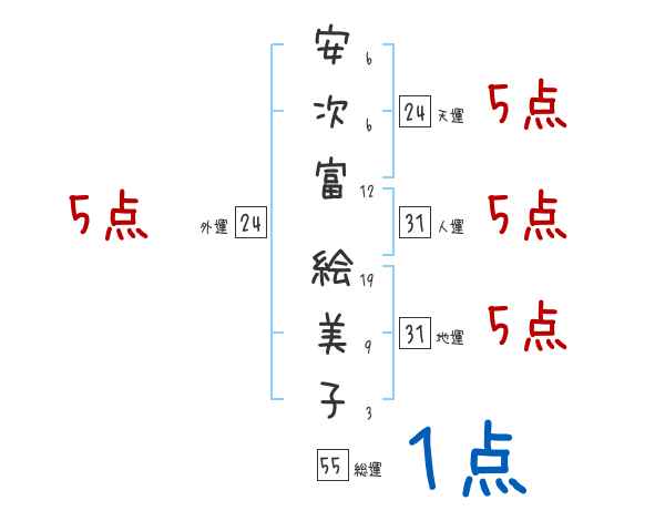 安次富絵美子さんの画数の鑑定結果