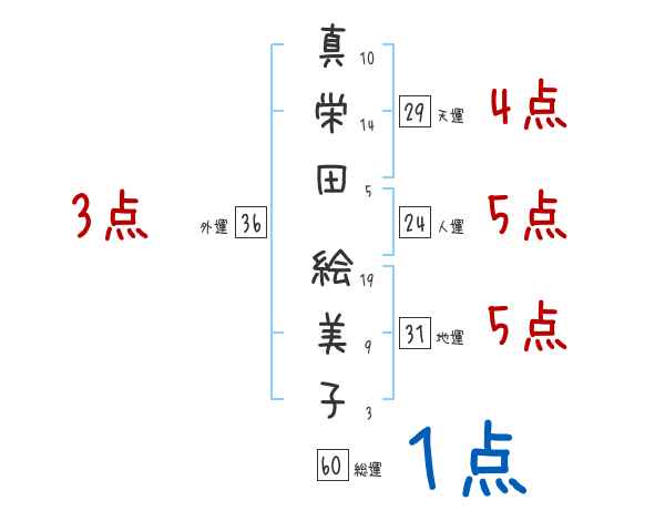 真栄田絵美子さんの画数の鑑定結果