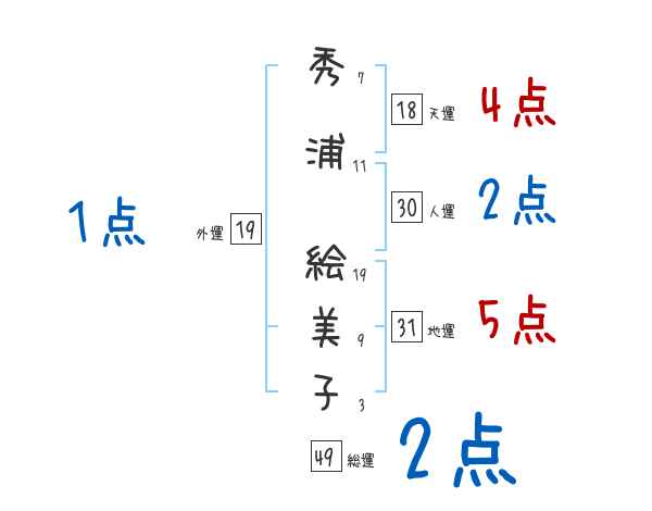 秀浦絵美子さんの画数の鑑定結果