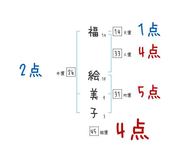 外運![]() | 福絵美子さんの外運は26画の2つ星!波瀾万丈かも。信頼できる人を大事にしましょう。 生活面を象徴する運勢です。外部から受ける影響力を表し、結婚運、家庭運や職場、環境への順応性を表します。 |