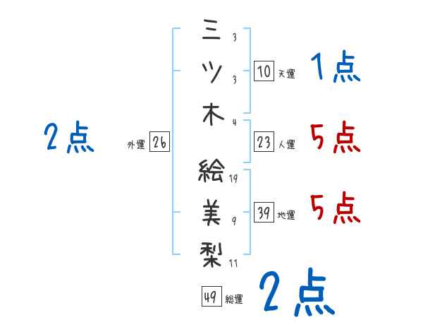 三ツ木絵美梨さんの画数の鑑定結果