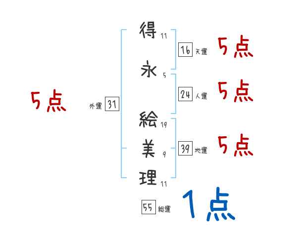 人運![]() | 得永絵美理さんの人運は24画の5つ星!家庭運が良く順調な人生。金運にも恵まれる。 性格や才能などを表す2番目に重要な運勢です。人間関係や協調性、社会的な成功に影響します。主に20歳から50歳ぐらいまでの中年期の運勢を表します。 |