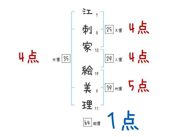 江刺家絵美理さんの画数の鑑定結果