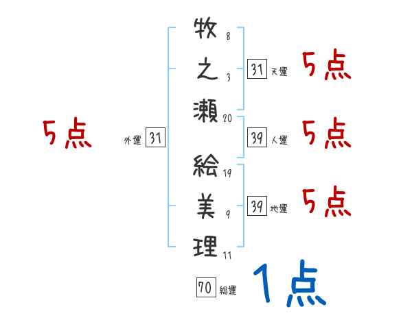 牧之瀬絵美理さんの画数の鑑定結果