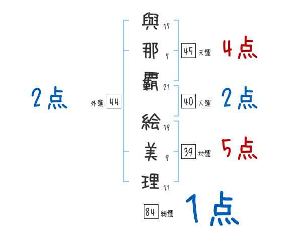 與那覇絵美理さんの画数の鑑定結果