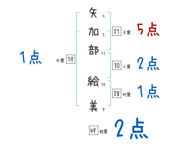 外運![]() | 矢加部絵美さんの外運は19画の1つ星!優れた才能を持ちますが、協調性が足りないことも。周りの人と協力する事を意識しましょう。 生活面を象徴する運勢です。外部から受ける影響力を表し、結婚運、家庭運や職場、環境への順応性を表します。 |