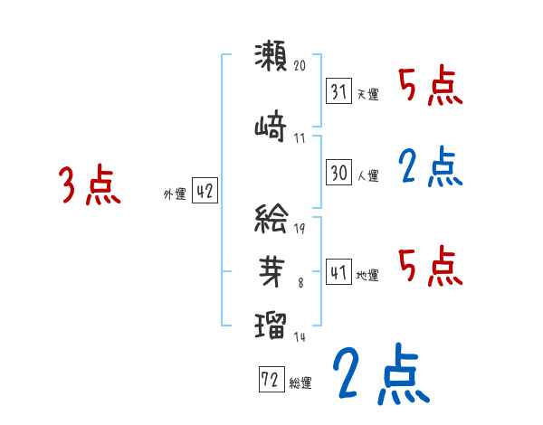 瀬﨑絵芽瑠さんの外運は42画の3つ星