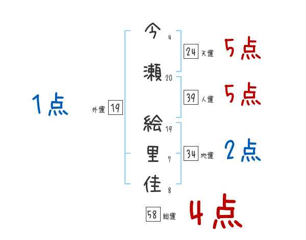 今瀬絵里佳さんの画数の鑑定結果