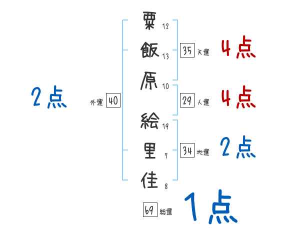 粟飯原絵里佳さんの画数の鑑定結果