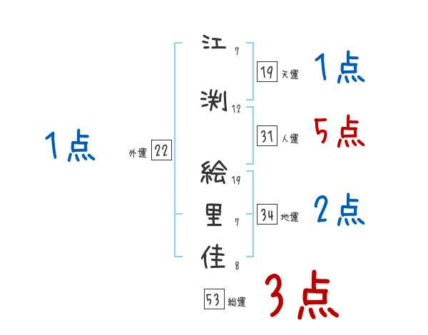 外運![]() | 江渕絵里佳さんの外運は22画の1つ星!努力することが苦手ないっぽう手先が器用。芸術性にも優れる。 生活面を象徴する運勢です。外部から受ける影響力を表し、結婚運、家庭運や職場、環境への順応性を表します。 |