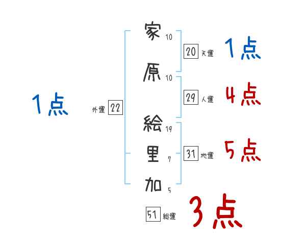 総運![]() | 家原絵里加さんの総運は51画の3つ星!変化が激しく、危険に注意。堅実な性格。 あなたの人生を表す1番重要な運勢です。生涯を通じて影響する総合運となり、主に50歳以降の晩年期に影響を及ぼします。 |