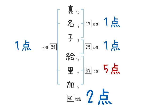 真名子絵里加さんの画数の鑑定結果