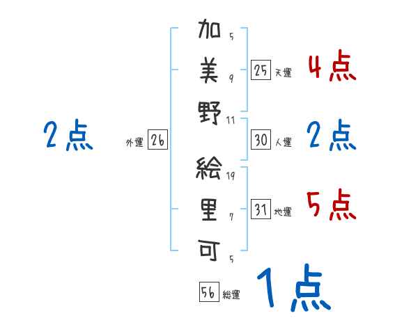 加美野絵里可さんの画数の鑑定結果