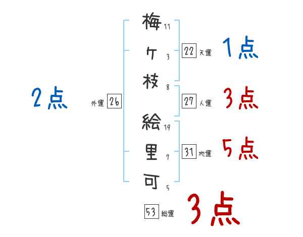 梅ヶ枝絵里可さんの画数の鑑定結果