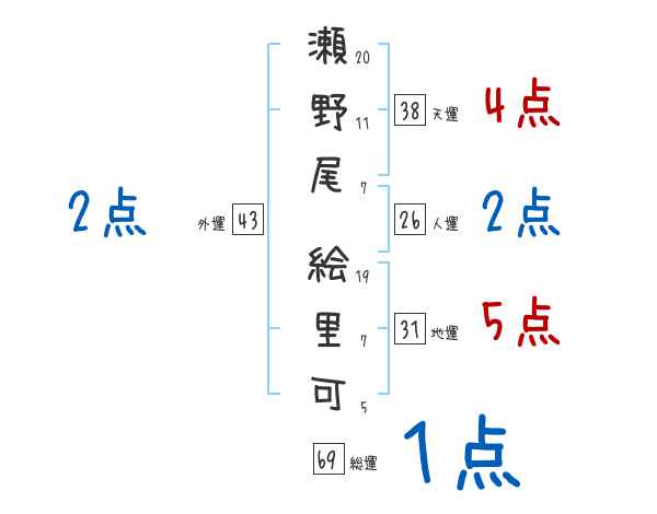 瀬野尾絵里可さんの画数の鑑定結果