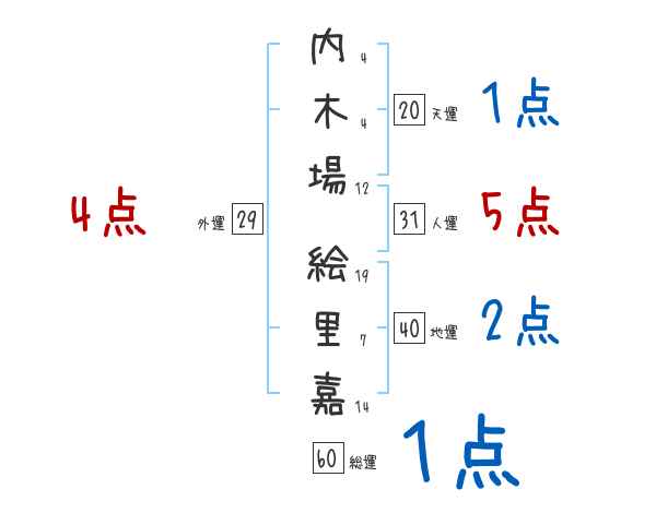 内木場絵里嘉さんの画数の鑑定結果