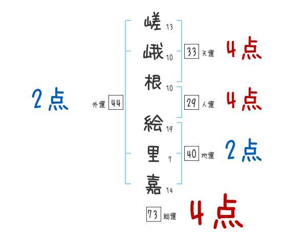 嵯峨根絵里嘉さんの画数の鑑定結果