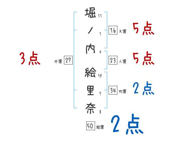堀ノ内絵里奈さんの画数の鑑定結果