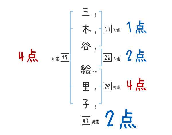 三木谷絵里子さんの画数の鑑定結果