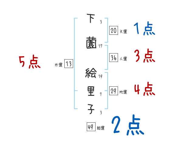 下薗絵里子さんの画数の鑑定結果