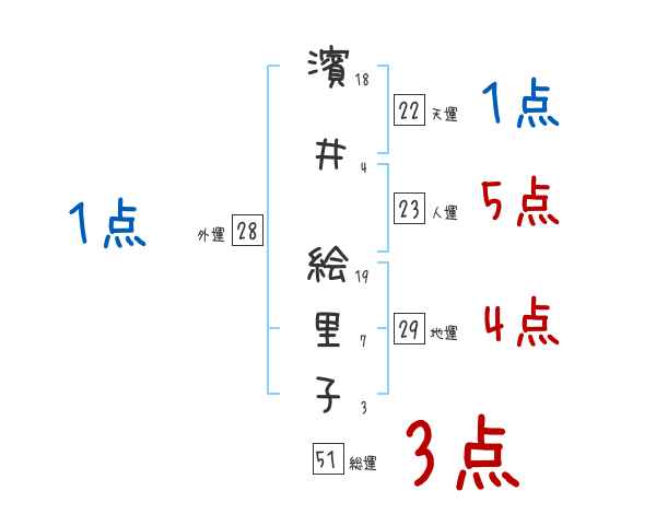 濱井絵里子さんの画数の鑑定結果