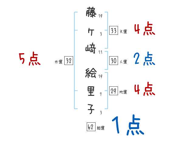 藤ヶ﨑絵里子さんの画数の鑑定結果