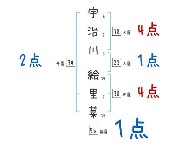 宇治川絵里菜さんの画数の鑑定結果